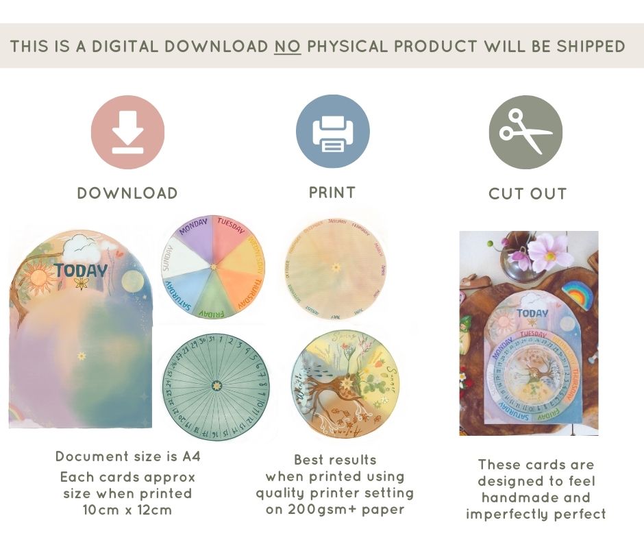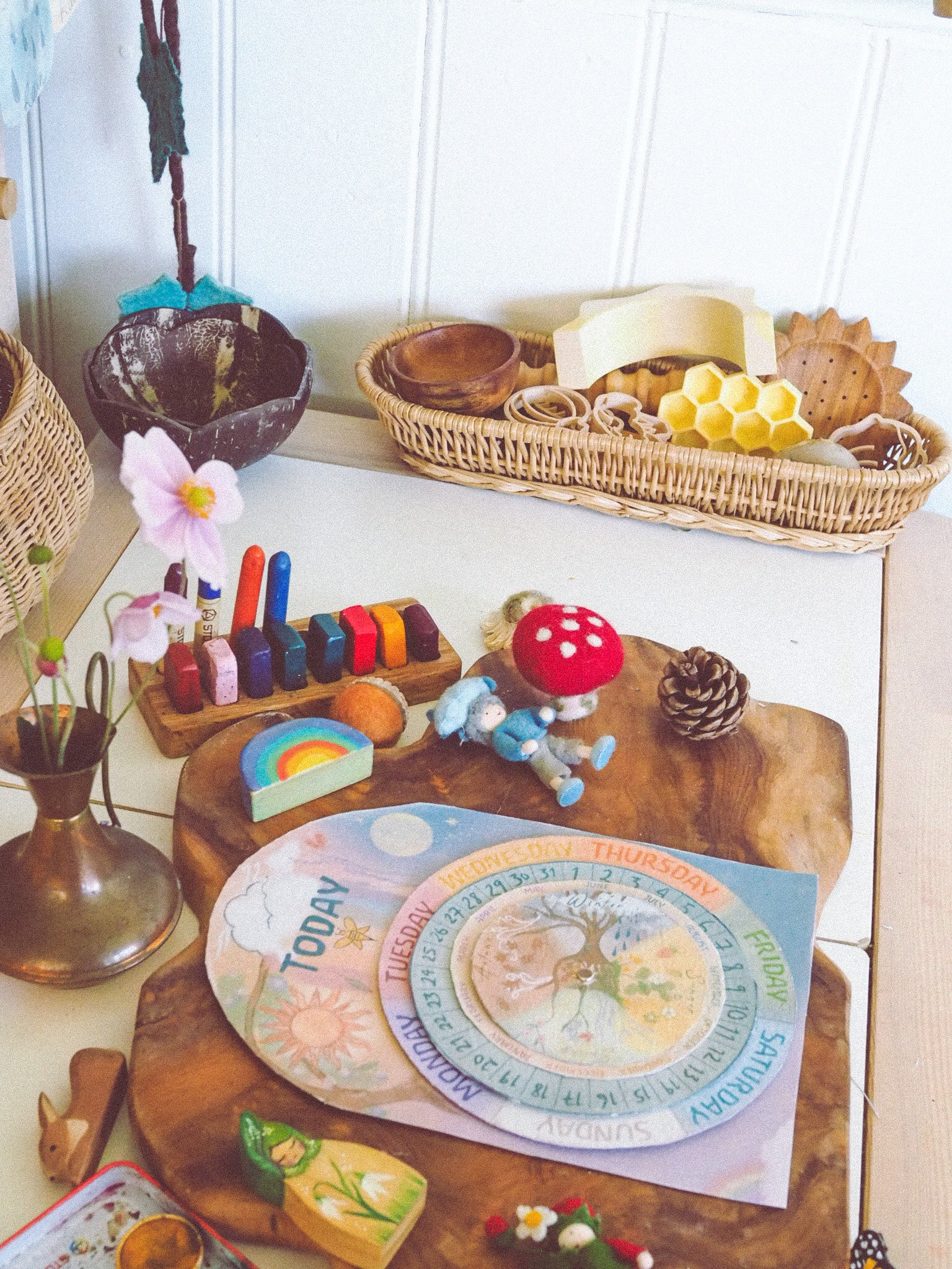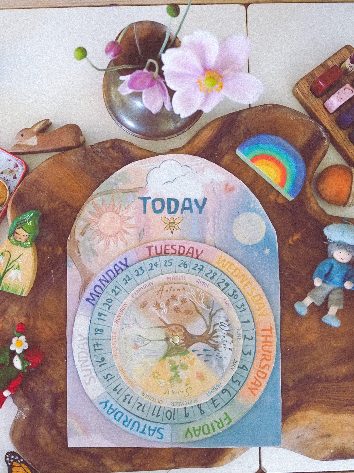 Inspired by Steiner, Waldorf, and Montessori philosophies, our perpetual calendar is a versatile educational resource suitable for home rhythm homeschooling, preschool classrooms, or as a delightful addition to your educational toolkit.